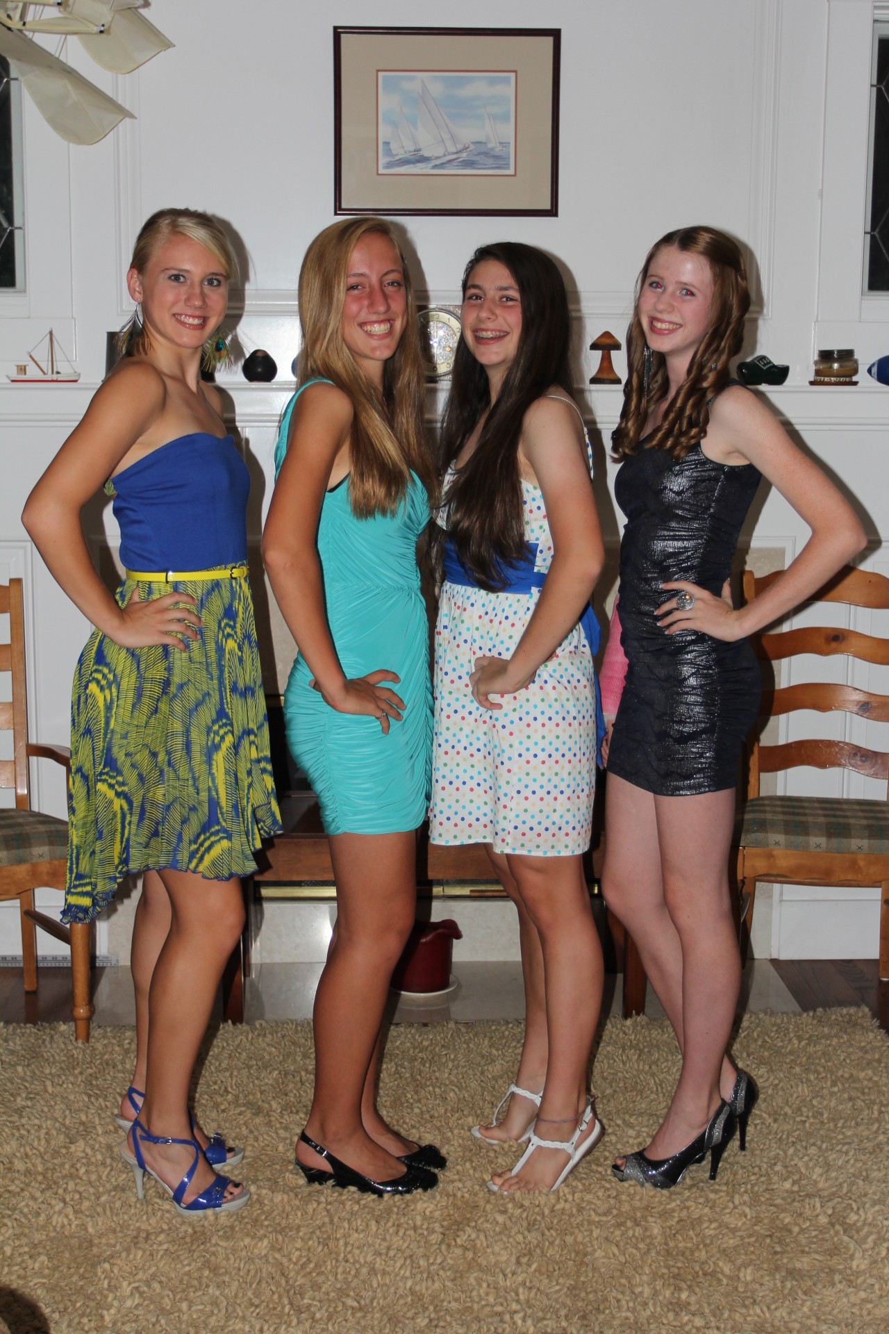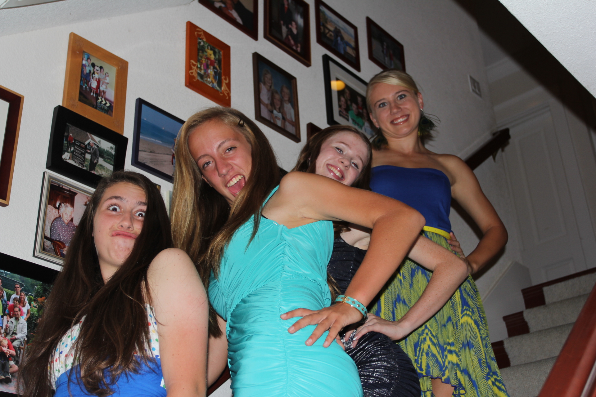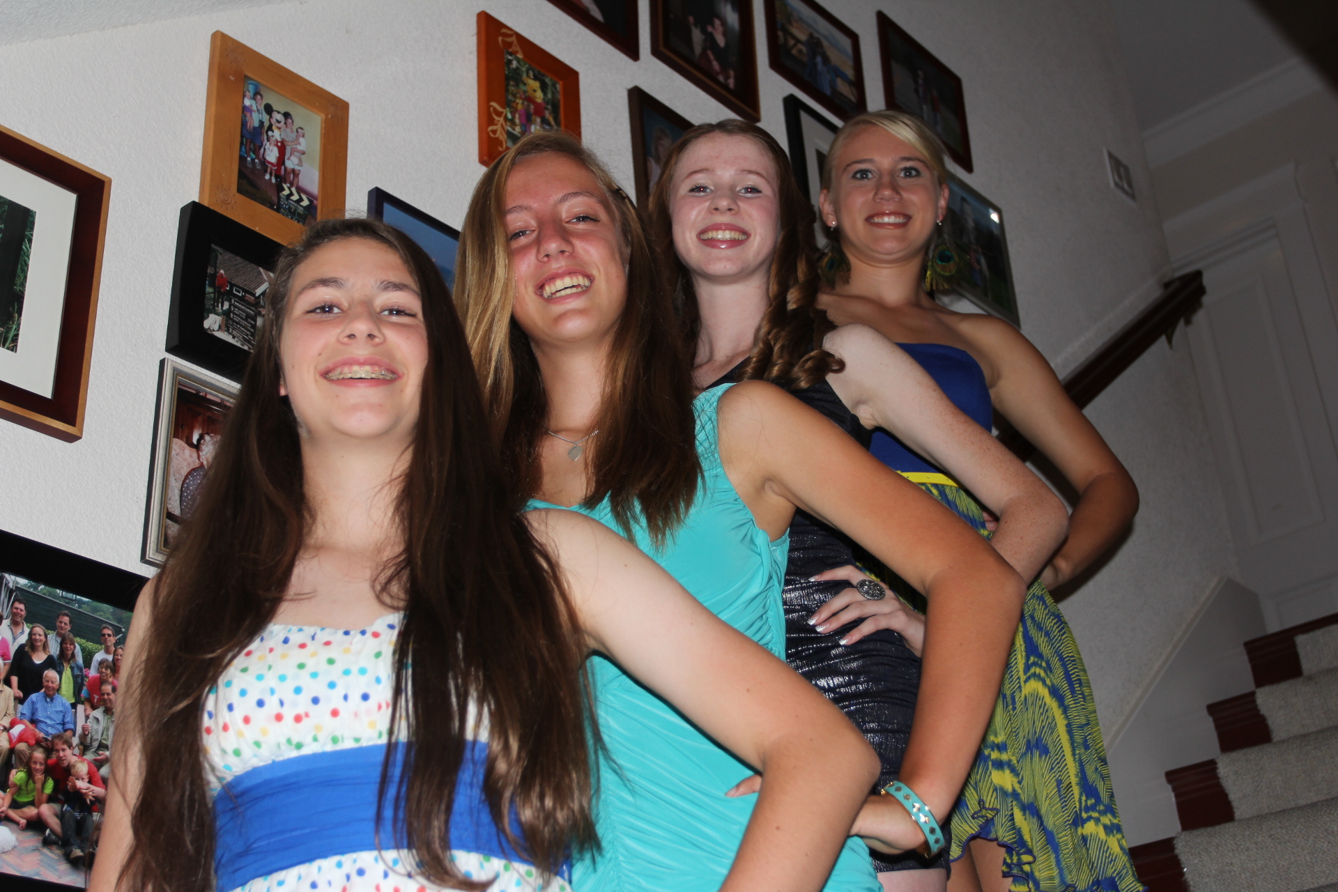 Hier zijn wat fotos van Karin, Lisa en enige vriendinnen die zich voorbereiden op de Homecoming Dance van de highschool.